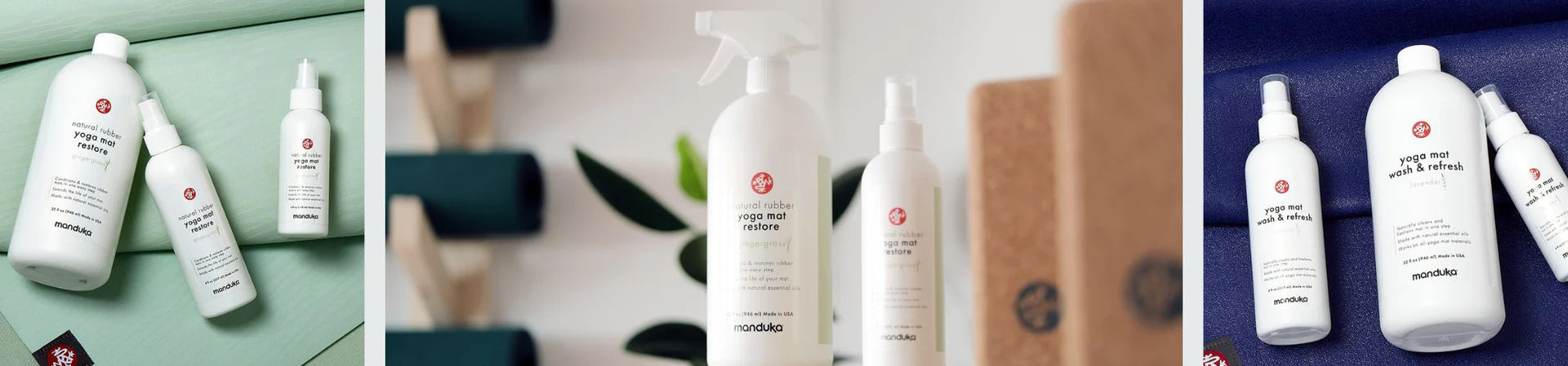 Os produtos de limpeza Manduka foram criados para cuidar do seu tapete de forma natural, eficaz e segura.